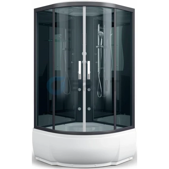 Душевой шланг, Душевая лейка, Держатель для душевой лейки, Полочка, Ручки, Подсветка, Верхний душ, Поддон, Сиденье, Радио, Смеситель, Сифон, Штанга душевая, Зеркало