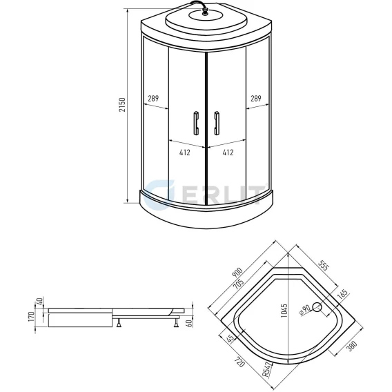 Душевая кабина 90×90×215 см Erlit Comfort ER3509PF-C4-RUS