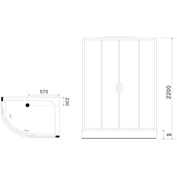 Душевая кабина 120x80x220 см Black & White Galaxy 5505120R прозрачное