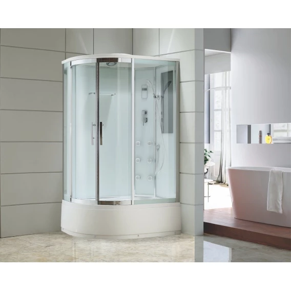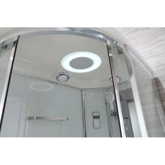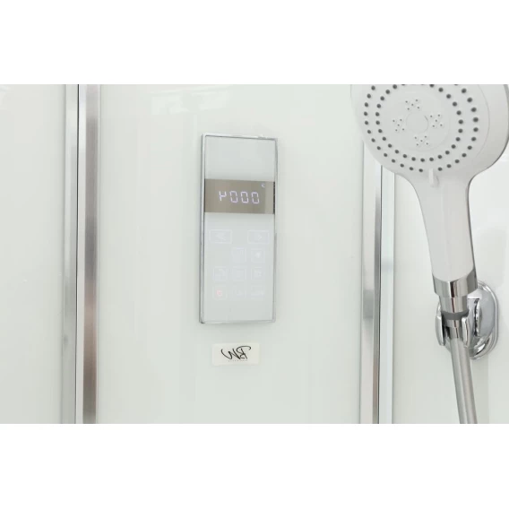Душевой шланг, Душевая лейка, Держатель для душевой лейки, Подключение для душевого шланга, Полочка, Ручки, LED подсветка, Верхний душ, Bluetooth, Металлический каркас, Поддон, Сиденье, Радио, Смеситель, Сифон, Ножки, Зеркало
