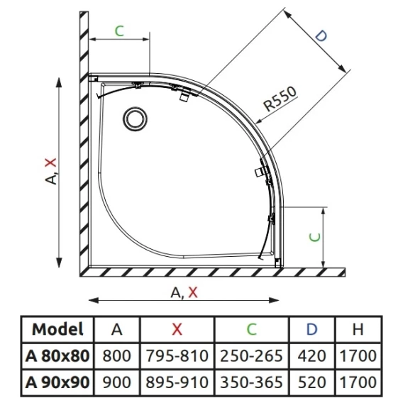 Душевой уголок Radaway Classic A 90×90×170 белый/фабрик