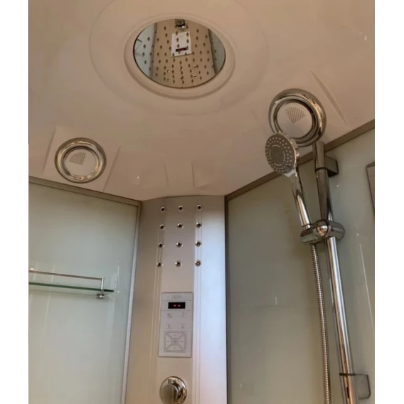 Душевой шланг, Душевая лейка, Держатель для душевой лейки, Полочка, Верхний душ, Подсветка “Лунный свет”, Поддон, Телефон, Радио, Излив, Смеситель, Сифон, Штанга душевая, Зеркало