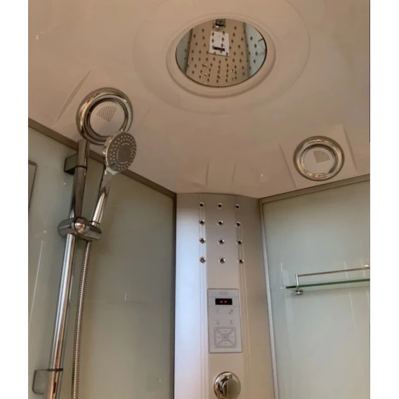 Душевой шланг, Душевая лейка, Держатель для душевой лейки, Полочка, Верхний душ, Подсветка “Лунный свет”, Поддон, Телефон, Радио, Излив, Смеситель, Сифон, Штанга душевая, Зеркало