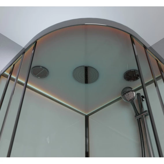 Душевой шланг, Душевая лейка, Держатель для душевой лейки, Подключение для душевого шланга, Полочка, Ручки, Верхний душ, Металлический каркас, Поддон, Смеситель, Сифон, Штанга душевая, Ножки
