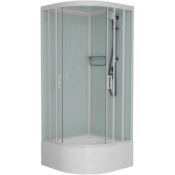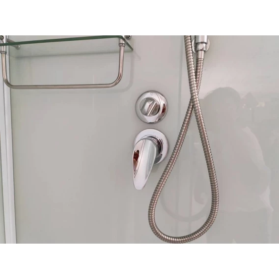 Душевой шланг, Душевая лейка, Держатель для душевой лейки, Подключение для душевого шланга, Полочка, Ручки, Верхний душ, Металлический каркас, Поддон, Смеситель, Сифон, Штанга душевая, Ножки