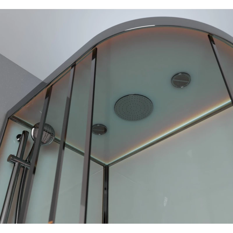 Душевой шланг, Душевая лейка, Держатель для душевой лейки, Подключение для душевого шланга, Полочка, Ручки, Верхний душ, Металлический каркас, Поддон, Смеситель, Сифон, Штанга душевая, Ножки