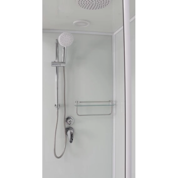Душевой шланг, Душевая лейка, Держатель для душевой лейки, Подключение для душевого шланга, Полочка, Ручки, Верхний душ, Металлический каркас, Поддон, Смеситель, Сифон, Штанга душевая, Ножки