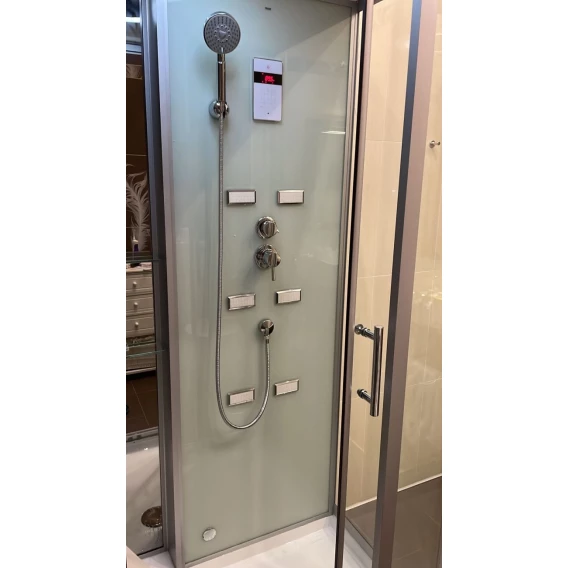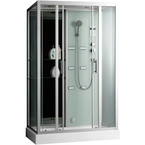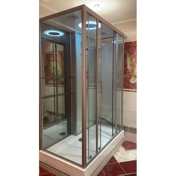 Душевой шланг, Душевая лейка, Держатель для душевой лейки, Подключение для душевого шланга, Полочка, Ручки, Подсветка, Верхний душ, Металлический каркас, Поддон, Радио, Смеситель, Сифон, Ножки
