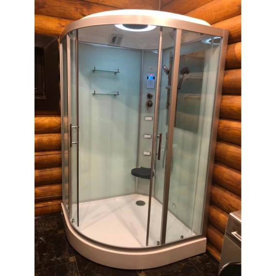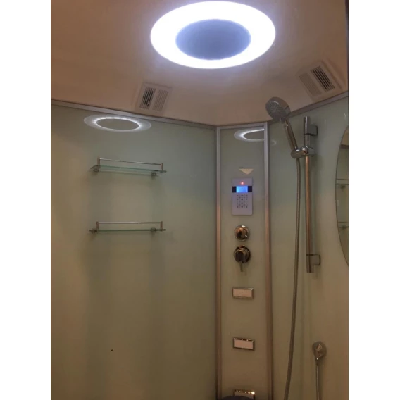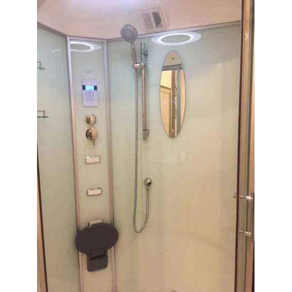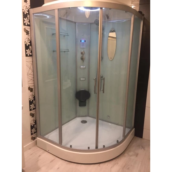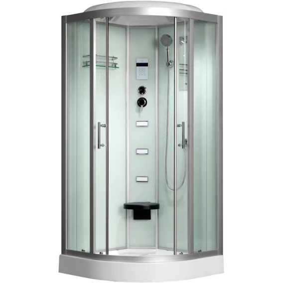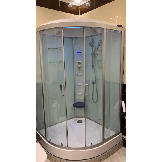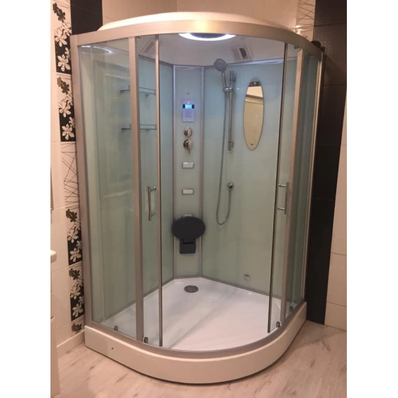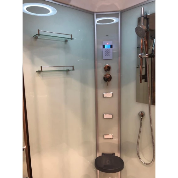 Душевой шланг, Душевая лейка, Держатель для душевой лейки, Подключение для душевого шланга, Полочка, Ручки, Подсветка, Верхний душ, Динамик, Металлический каркас, Поддон, Сиденье, Радио, Смеситель, Сифон, Ножки