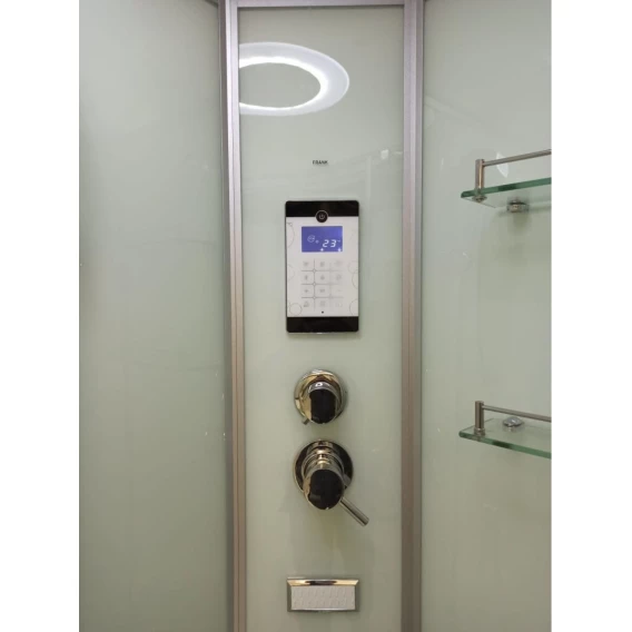 Душевой шланг, Душевая лейка, Держатель для душевой лейки, Подключение для душевого шланга, Полочка, Ручки, Подсветка, Верхний душ, Динамик, Металлический каркас, Поддон, Сиденье, Радио, Смеситель, Сифон, Штанга душевая, Ножки