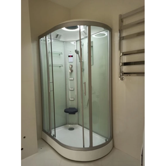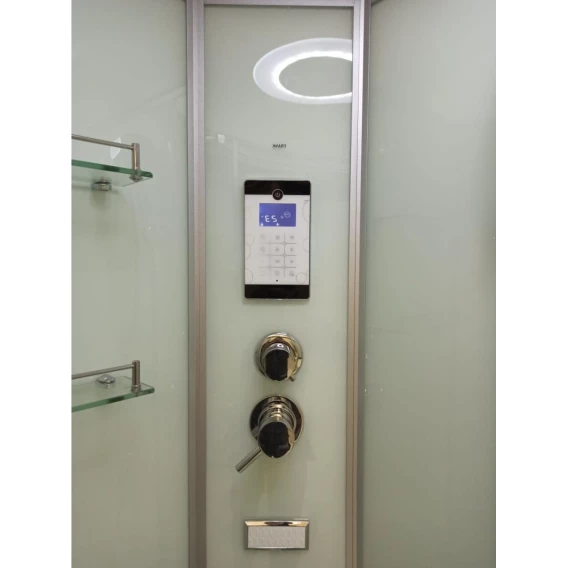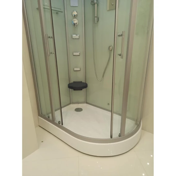 Душевой шланг, Душевая лейка, Держатель для душевой лейки, Подключение для душевого шланга, Полочка, Ручки, Подсветка, Верхний душ, Динамик, Металлический каркас, Поддон, Сиденье, Радио, Смеситель, Сифон, Штанга душевая, Ножки