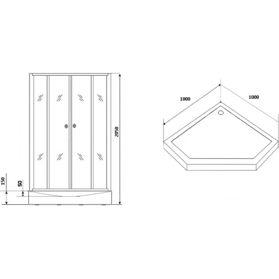 Душевой шланг, Душевая лейка, Держатель для душевой лейки, Подключение для душевого шланга, Полочка, Поддон, Смеситель, Сифон, Мыльница, Штанга душевая, Ножки, Зеркало
