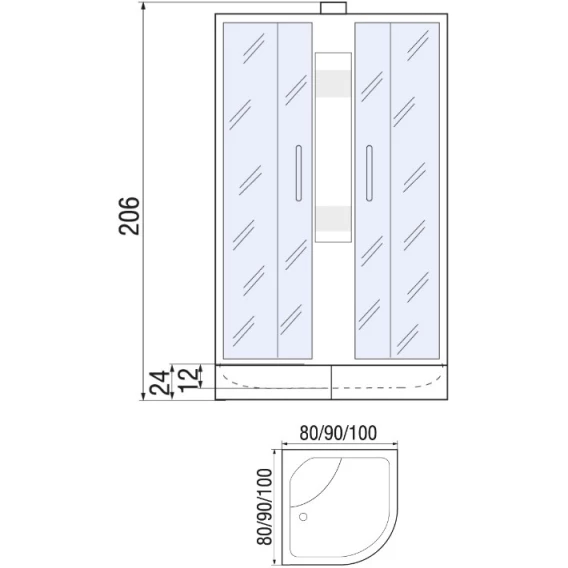 Душевая кабина 100x100x206 River NARA Б/К 100/24 МТ