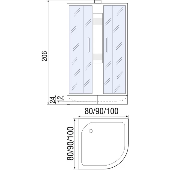 Душевой уголок 90-100x79,5 см Cezares SLIDER-AH-1-80-90/100-C-NERO прозрачное