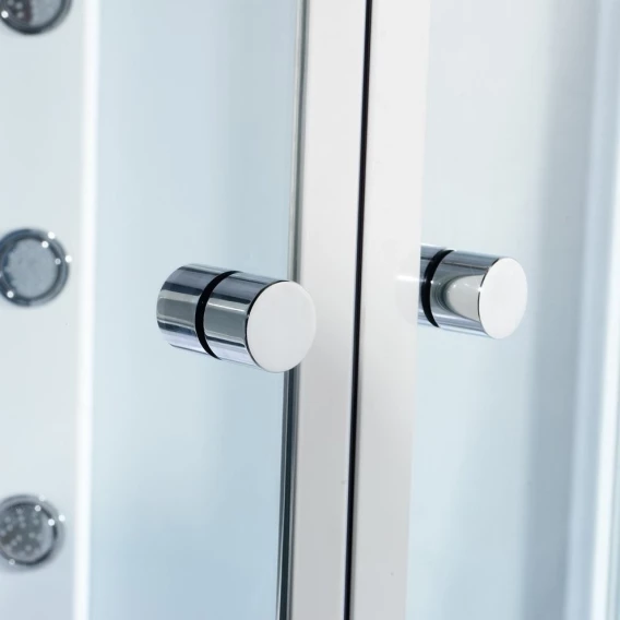 Душевой шланг, Душевая лейка, Держатель для душевой лейки, Подключение для душевого шланга, Полочка, Ручки, LED подсветка, Верхний душ, Металлический каркас, Поддон, Радио, Смеситель, Сифон, Штанга душевая, Ножки, Зеркало