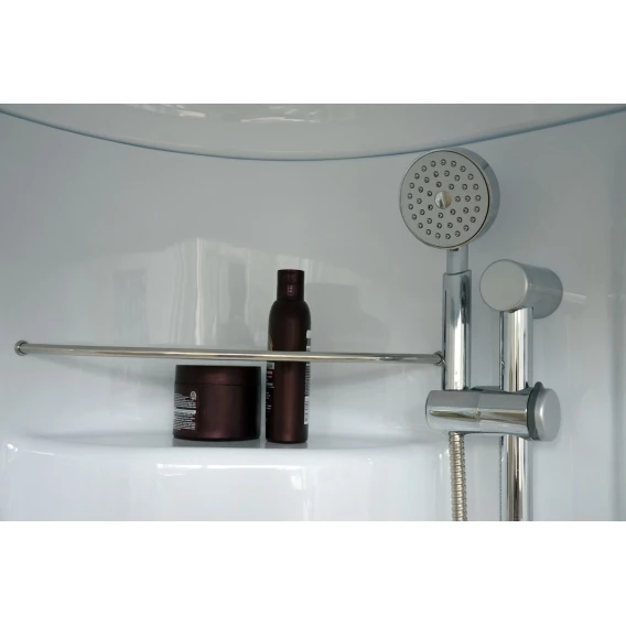 Душевой шланг, Душевая лейка, Держатель для душевой лейки, Подключение для душевого шланга, Полочка, Ручки, Верхний душ, Поддон, Сиденье, Смеситель, Сифон, Штанга душевая, Ножки, Зеркало
