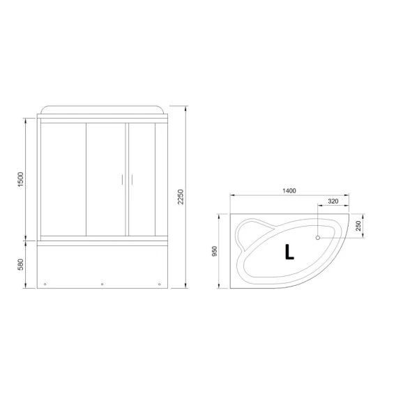 Душевая кабина 140x95x225 см Royal Bath RB140ALP-C-CH-L матовое