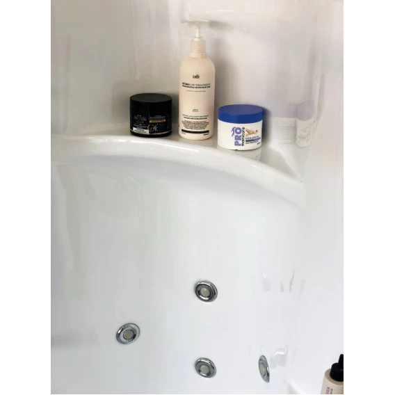 Душевой шланг, Душевая лейка, Держатель для душевой лейки, Подключение для душевого шланга, Полочка, Ручки, Верхний душ, Поддон, Сиденье, Излив, Смеситель, Слив-перелив, Штанга душевая, Ножки, Зеркало
