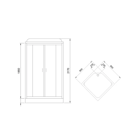 Душевой шланг, Душевая лейка, Держатель для душевой лейки, Подключение для душевого шланга, Полочка, Ручки, Верхний душ, Поддон, Сиденье, Смеситель, Сифон, Ножки