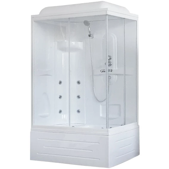 Душевой шланг, Душевая лейка, Держатель для душевой лейки, Подключение для душевого шланга, Полочка, Ручки, Верхний душ, Поддон, Сиденье, Смеситель, Сифон, Ножки