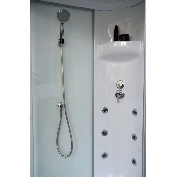 Душевой шланг, Душевая лейка, Держатель для душевой лейки, Подключение для душевого шланга, Полочка, Ручки, Верхний душ, Поддон, Сиденье, Смеситель, Сифон, Ножки