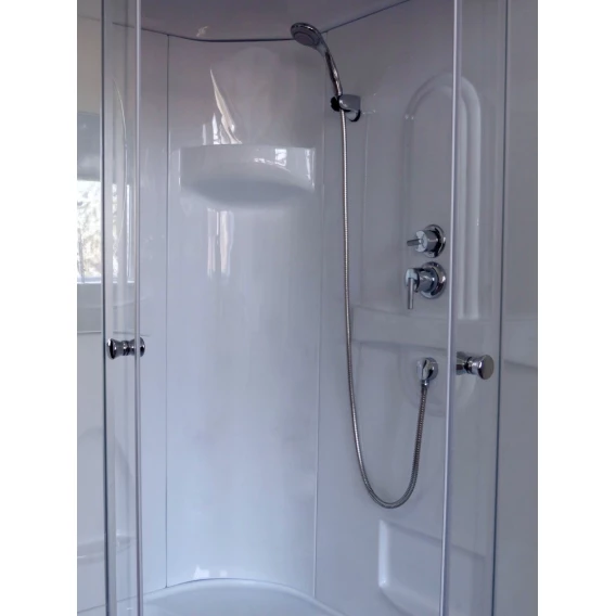 Душевой шланг, Душевая лейка, Держатель для душевой лейки, Подключение для душевого шланга, Полочка, Ручки, Верхний душ, Поддон, Сиденье, Смеситель, Сифон, Ножки