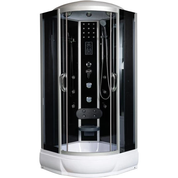Душевой шланг, Душевая лейка, Держатель для душевой лейки, Полочка, Верхний душ, Подсветка “Лунный свет”, Поддон, Телефон, Радио, Излив, Смеситель, Сифон, Штанга душевая, Зеркало