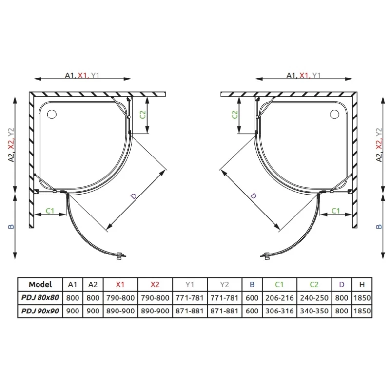 Душевой уголок Radaway Torrenta PDJ 80×80 L графитовое