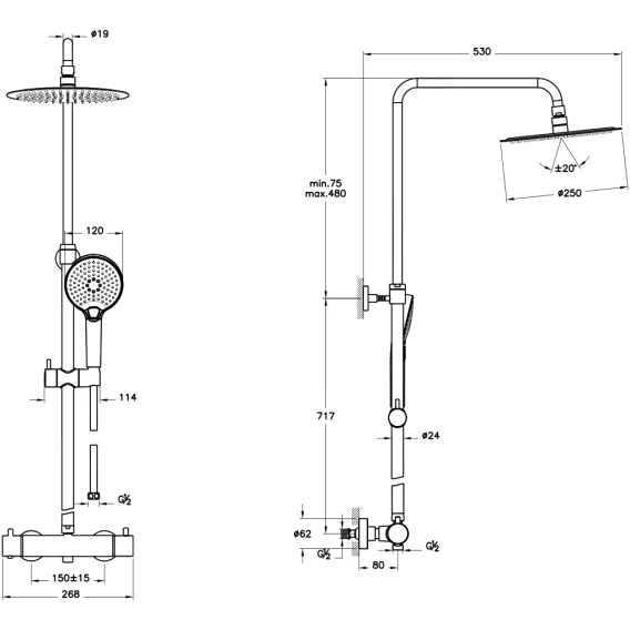 Душ и смотрится красиво, и практичен, как по мне. Можно использовать или большую лейку, или поменьше, как будет удобно. Напор везде хороший получается. Регулировка мощности и температуры удобная.