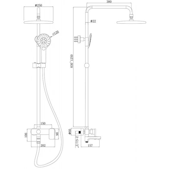 Душевая система 250 мм Bravat Riffle F6336370CP-A-RUS