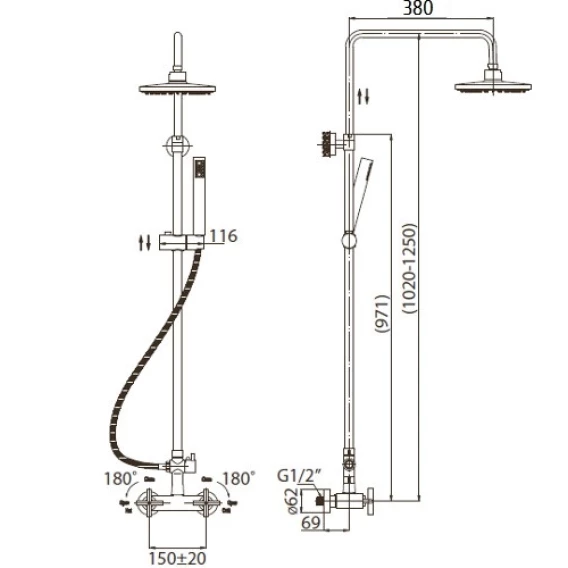 Металлическая розетка, Эксцентрики, Душевой шланг, Душевая лейка, Держатель для душевой лейки, Верхний душ, Смеситель, Кронштейн, Штанга душевая