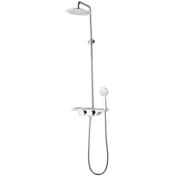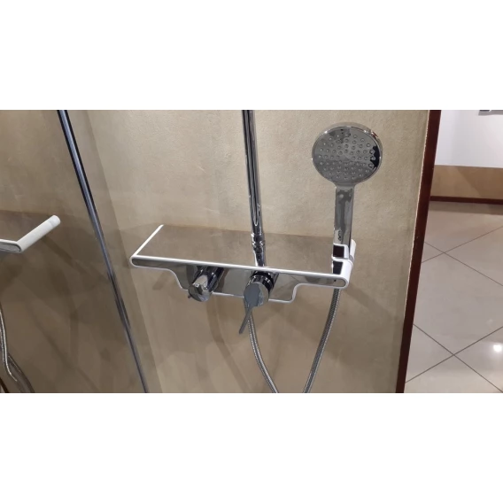 Металлическая розетка, Эксцентрики, Душевой шланг, Душевая лейка, Держатель для душевой лейки, Полочка, Верхний душ, Смеситель, Кронштейн, Штанга душевая