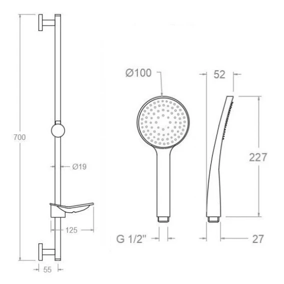 Крепление, Душевой шланг, Душевая лейка, Держатель для душевой лейки, Мыльница, Штанга душевая