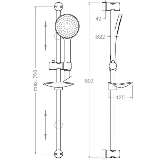 Крепление, Душевой шланг, Душевая лейка, Держатель для душевой лейки, Мыльница, Штанга душевая