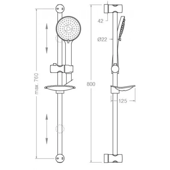 Крепление, Душевой шланг, Душевая лейка, Держатель для душевой лейки, Мыльница, Штанга душевая