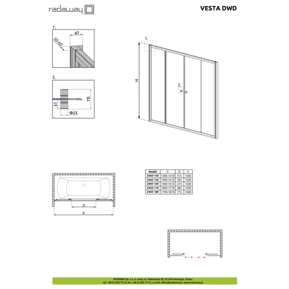 Шторка для ванны Radaway Vesta DWD 160 прозрачное
