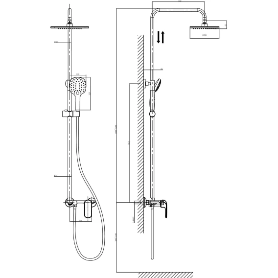 Аэратор, Металлическая розетка, Эксцентрики, Душевой шланг, Душевая лейка, Держатель для душевой лейки, Верхний душ, Смеситель, Кронштейн, Штанга душевая