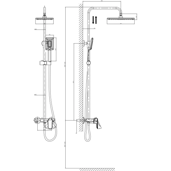 Аэратор, Металлическая розетка, Эксцентрики, Душевой шланг, Душевая лейка, Держатель для душевой лейки, Верхний душ, Кронштейн, Штанга душевая