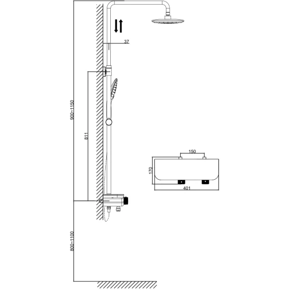 Аэратор, Металлическая розетка, Эксцентрики, Душевой шланг, Душевая лейка, Держатель для душевой лейки, Верхний душ, Кронштейн, Штанга душевая, Термостат