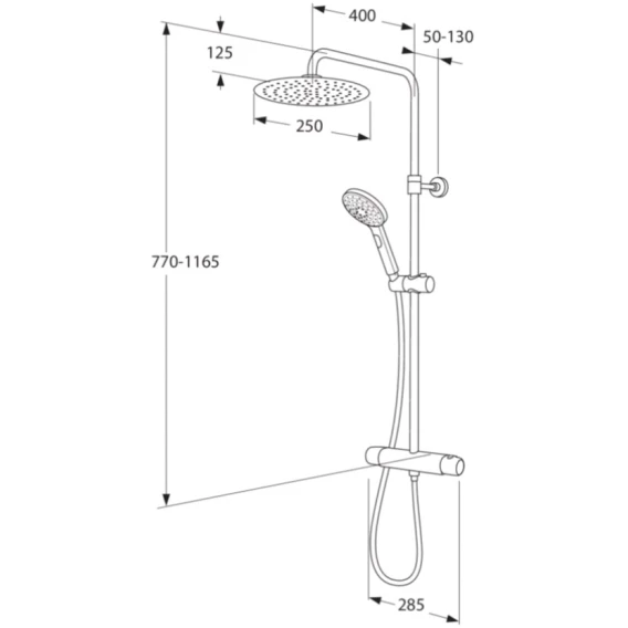 Душевой шланг, Душевая лейка, Держатель для душевой лейки, Верхний душ, Кронштейн, Штанга душевая, Термостат