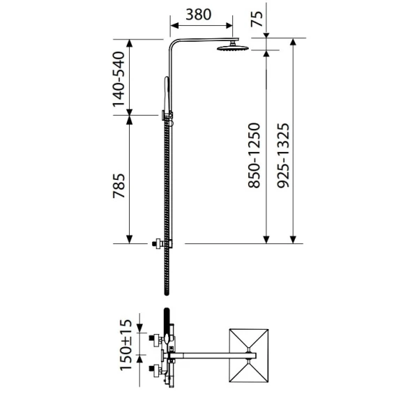 Металлическая розетка, Эксцентрики, Душевой шланг, Душевая лейка, Держатель для душевой лейки, Верхний душ, Кронштейн, Штанга душевая, Термостат