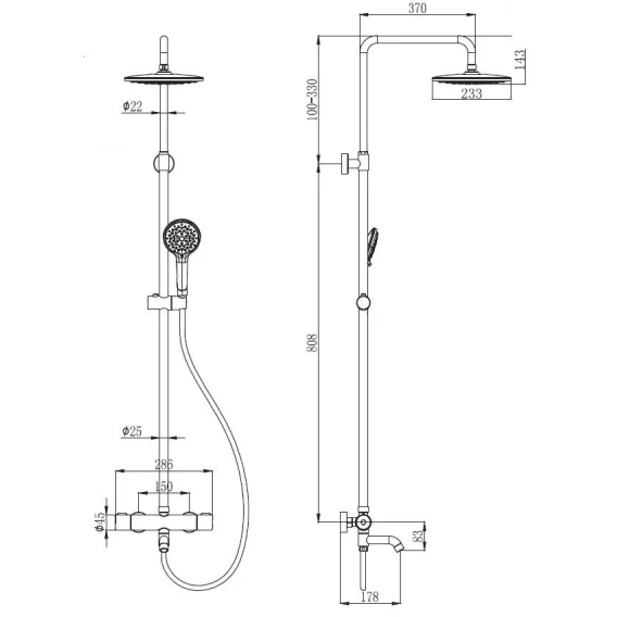 Душевая система 233 мм Esko STT1000