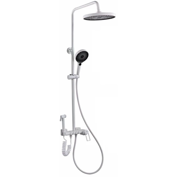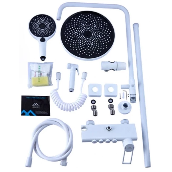 Аэратор, Металлическая розетка, Эксцентрики, Душевой шланг, Душевая лейка, Держатель для душевой лейки, Верхний душ, Смеситель, Кронштейн, Штанга душевая