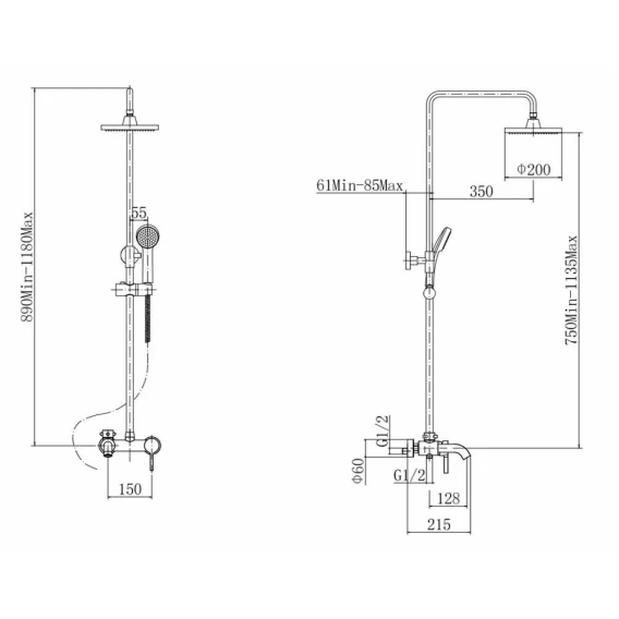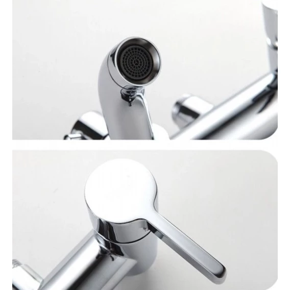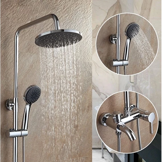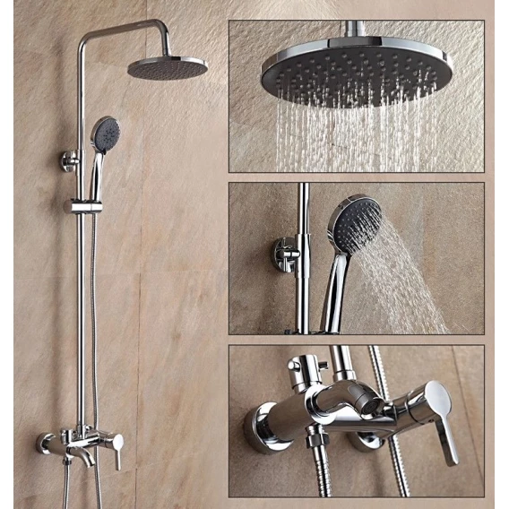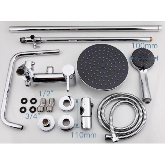 Аэратор, Металлическая розетка, Эксцентрики, Душевой шланг, Душевая лейка, Держатель для душевой лейки, Верхний душ, Смеситель, Кронштейн, Штанга душевая