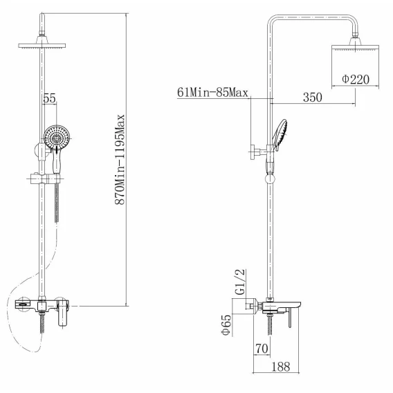 Душевая система 220 мм Fashun A2451-8