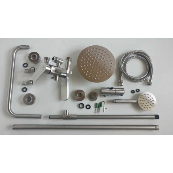 Металлическая розетка, Эксцентрики, Душевой шланг, Душевая лейка, Держатель для душевой лейки, Верхний душ, Смеситель, Кронштейн, Штанга душевая
