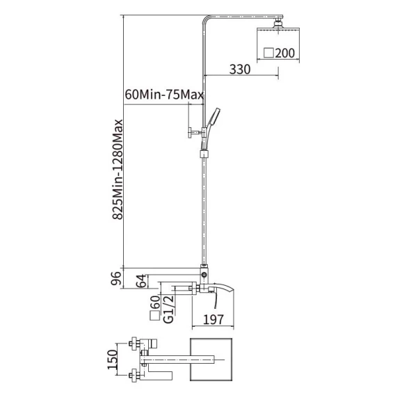 Аэратор, Металлическая розетка, Эксцентрики, Душевой шланг, Душевая лейка, Держатель для душевой лейки, Верхний душ, Смеситель, Кронштейн, Штанга душевая