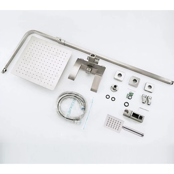 Аэратор, Металлическая розетка, Эксцентрики, Душевой шланг, Душевая лейка, Держатель для душевой лейки, Верхний душ, Смеситель, Кронштейн, Штанга душевая