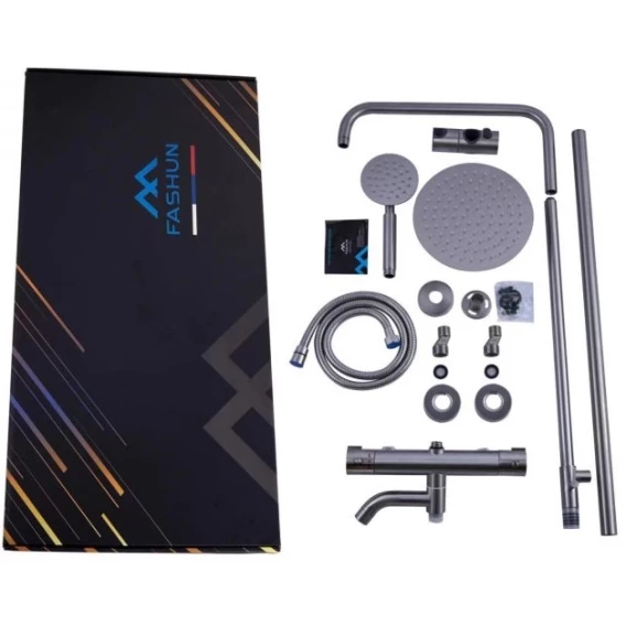 Аэратор, Металлическая розетка, Эксцентрики, Душевой шланг, Душевая лейка, Держатель для душевой лейки, Верхний душ, Кронштейн, Штанга душевая, Термостат