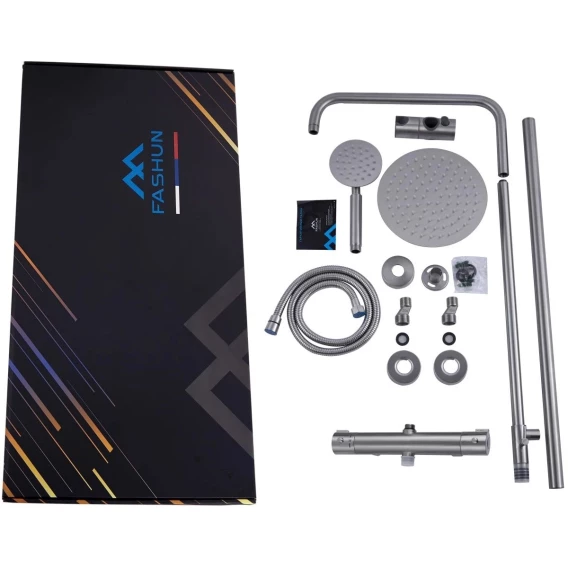 Металлическая розетка, Эксцентрики, Душевой шланг, Душевая лейка, Держатель для душевой лейки, Верхний душ, Кронштейн, Штанга душевая, Термостат